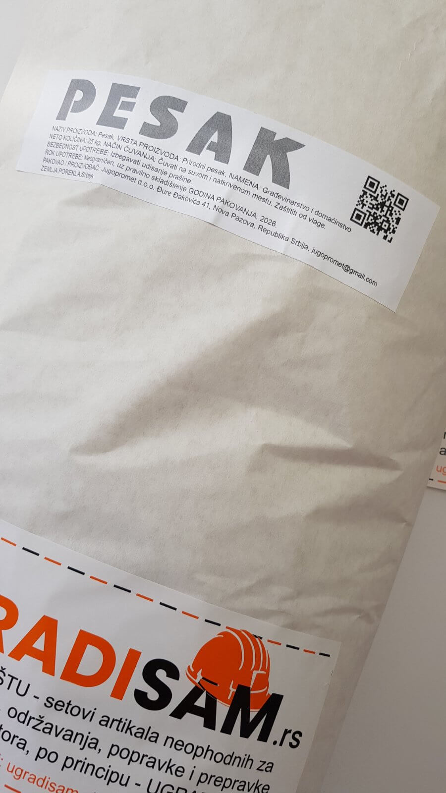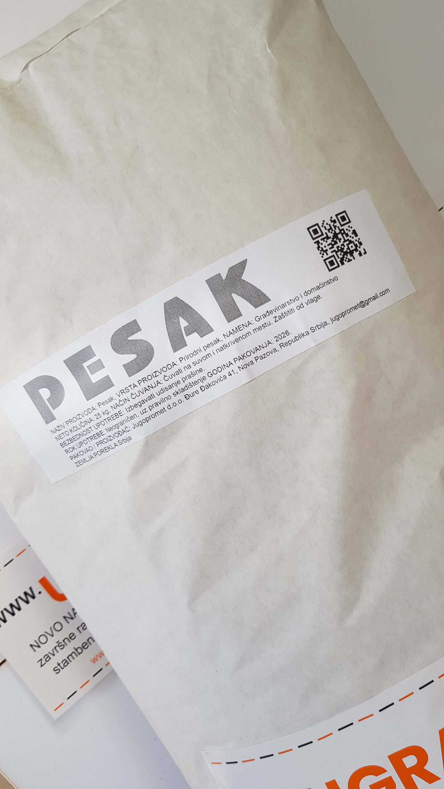 Prirodni proizvod namenjen za građevinarstvo i domaćinstvo pakovan u džakovima od po 25kg.